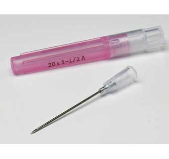 Sterile, single use needles with a special bevel grind designed for use in animals. Has a color-coded needle sheath and is