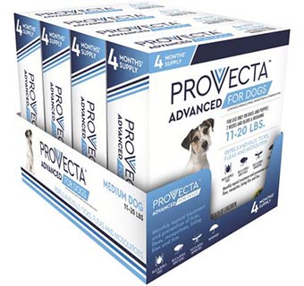 Provecta™ Advanced for Dogs (Permethrin, n-Methyl-2-Pyrrolidone, Imidacloprid, Pyriproxyfen) is a monthly topical treatment and